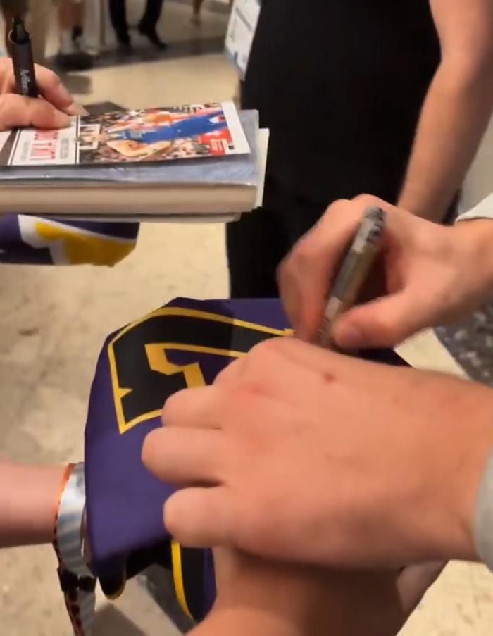 东契奇回国被球迷围堵:淡定在湖人球衣上签名 湖记:还剩18天合练